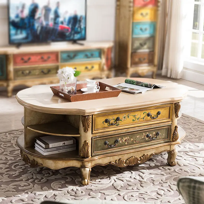 Американский деревенский чайный столик из цельной древесины Европейский ретро окрашенный большой чайный столик для гостиной
