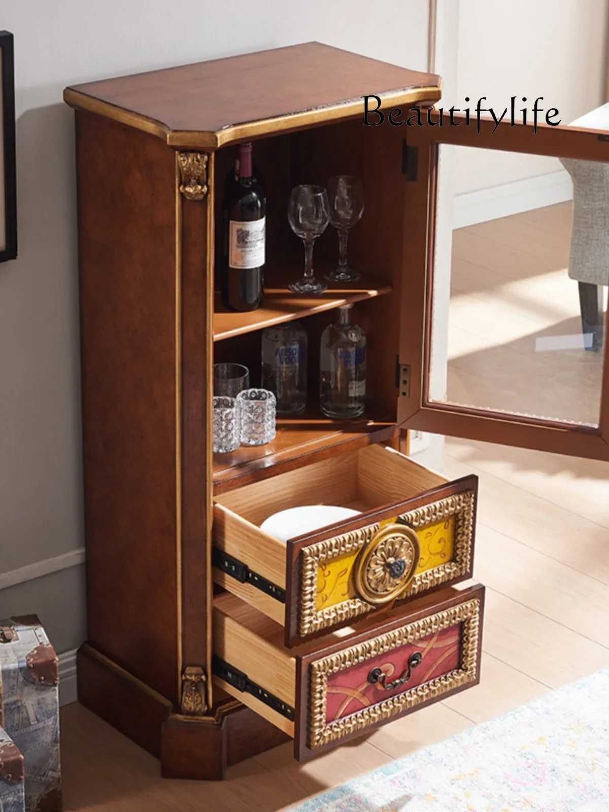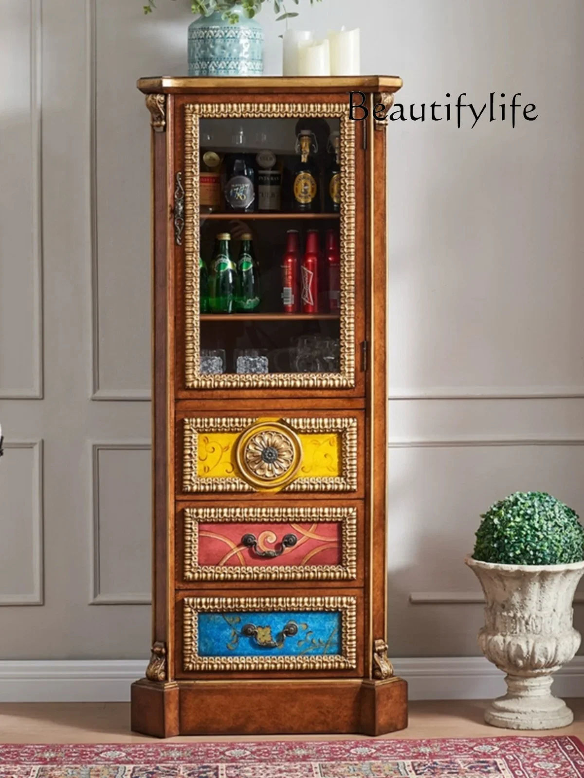Американский стиль во французском стиле окрашенный винный шкаф буфет шкаф шкафчик Размер комод