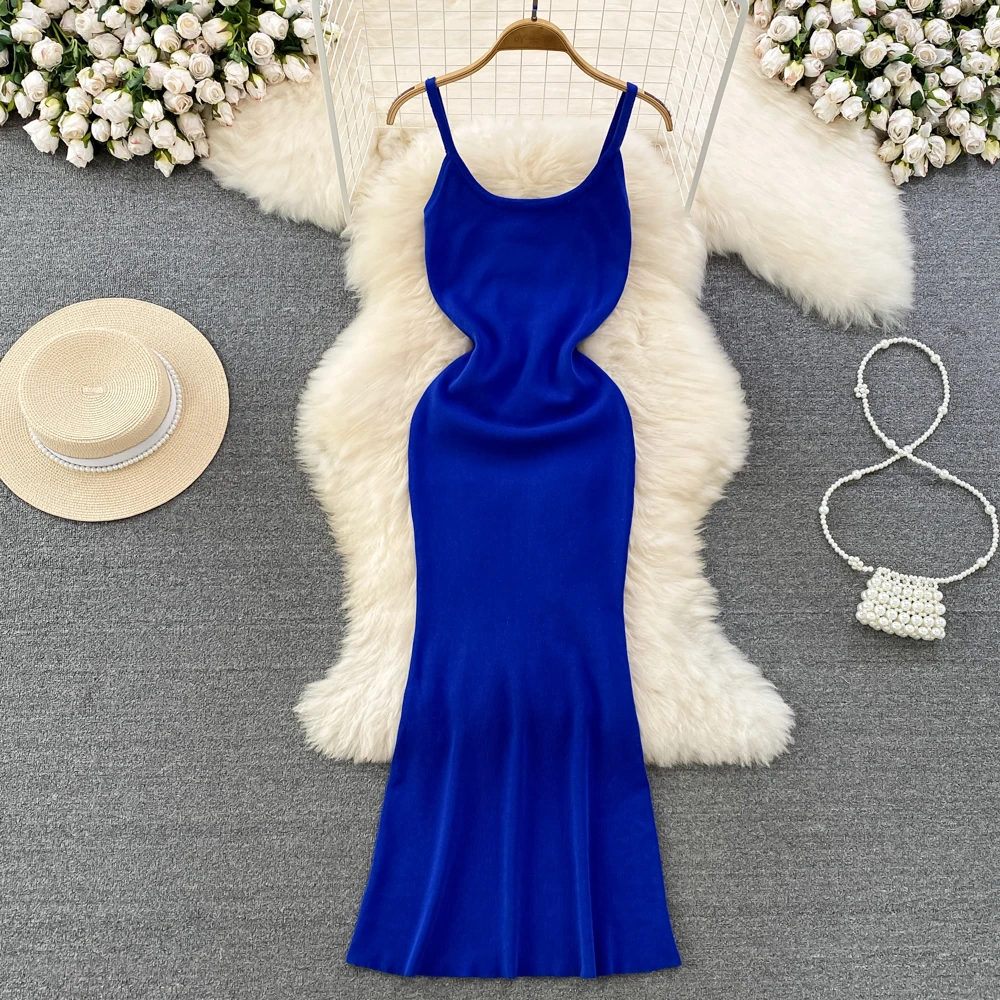 Американское винтажное трикотажное модное тонкое трикотажное платье средней длины с лямкой на шее