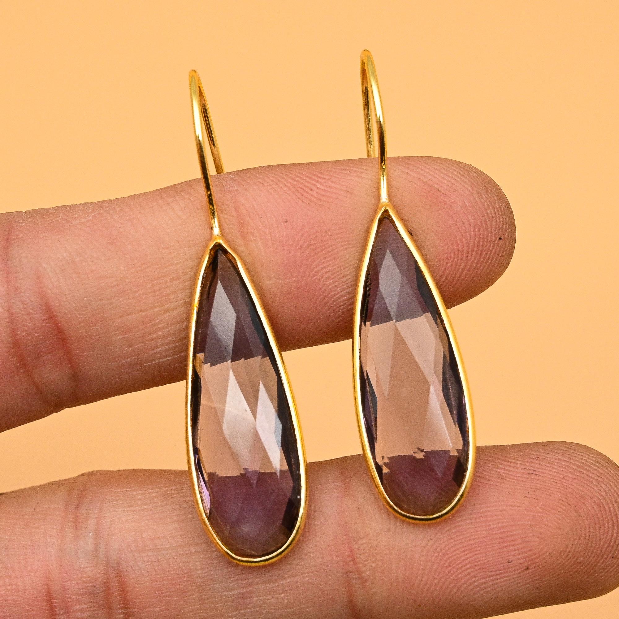 Аметист драгоценный камень 10K позолоченные серебряные ювелирные изделия женские подарочные серьги