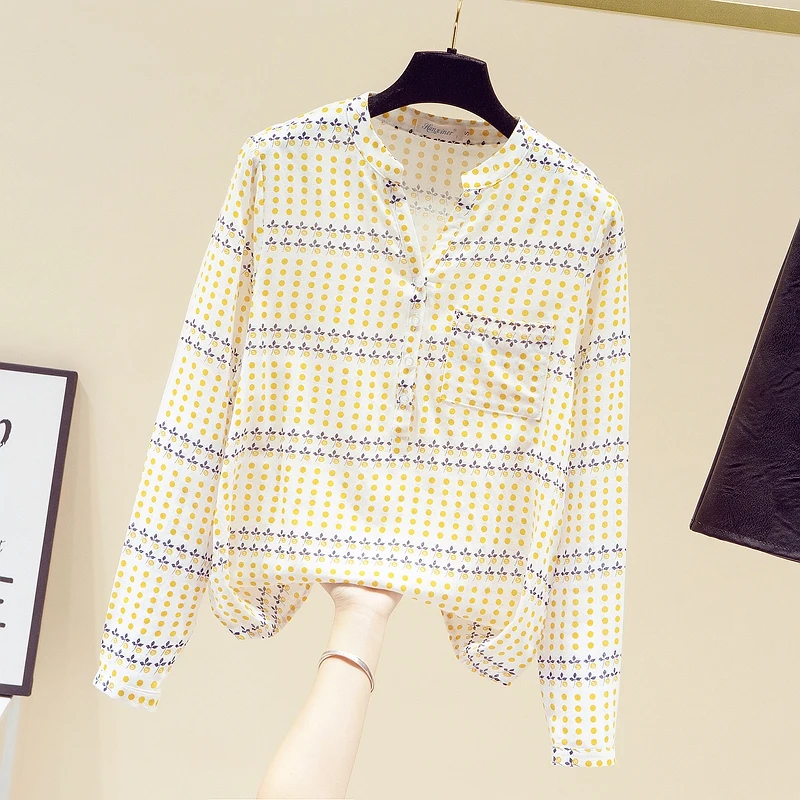 Женская рубашка с длинным рукавом, элегантная офисная блузка с V-образным вырезом и принтом в стиле ретро, весна-осень