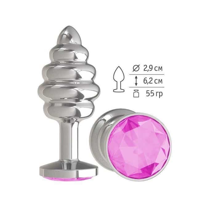 Анальная втулка Silver Spiral с розовым кристаллом маленькая.