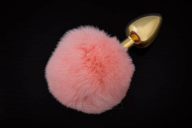 Анальная пробка Пикантные Штучки с розовым пушистым хвостом, золотистая, 6 см