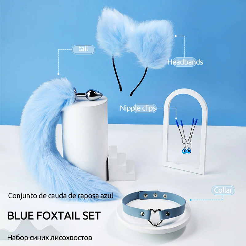 Анальная пробка с лисьим хвостом, сексуальная набивная головка с ушками лисы с кожаным зажимом для кольцо для соска, комплект для БДСМ, тюнинговый воротник, металлическая Анальная пробка
