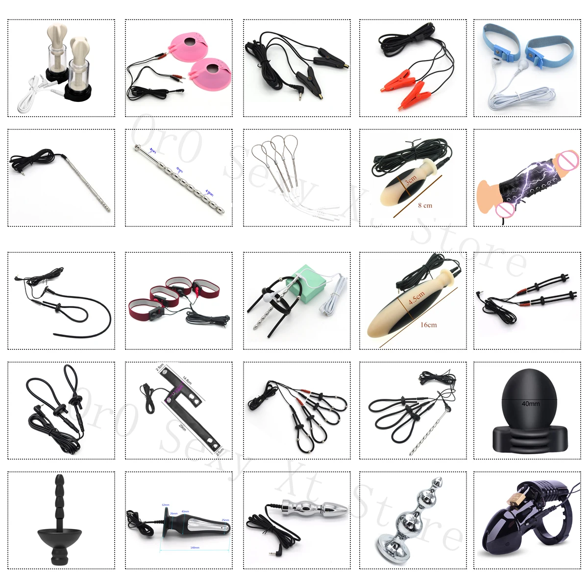 Анальная пробка с электрическим током для мужчин и женщин, кольцо на член, зажим для сосков в уретре, зажим для груди, массаж груди, альтернативные секс-игрушки для взрослых