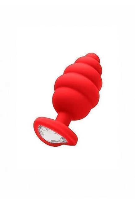 Анальная пробка Regular Ribbed Diamond Heart Plug Shots, красный