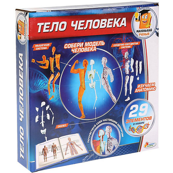 Анатомический набор Играем вместе «Маленький учёный: тело человека» позволит изучить и поближе познакомиться со строением тела человека. В него входит 29 различных частей тела человека: мышцы, скелет и сердечно-сосудистая система. Из них можно собрать модель человека на подставке для изучения анатомии.