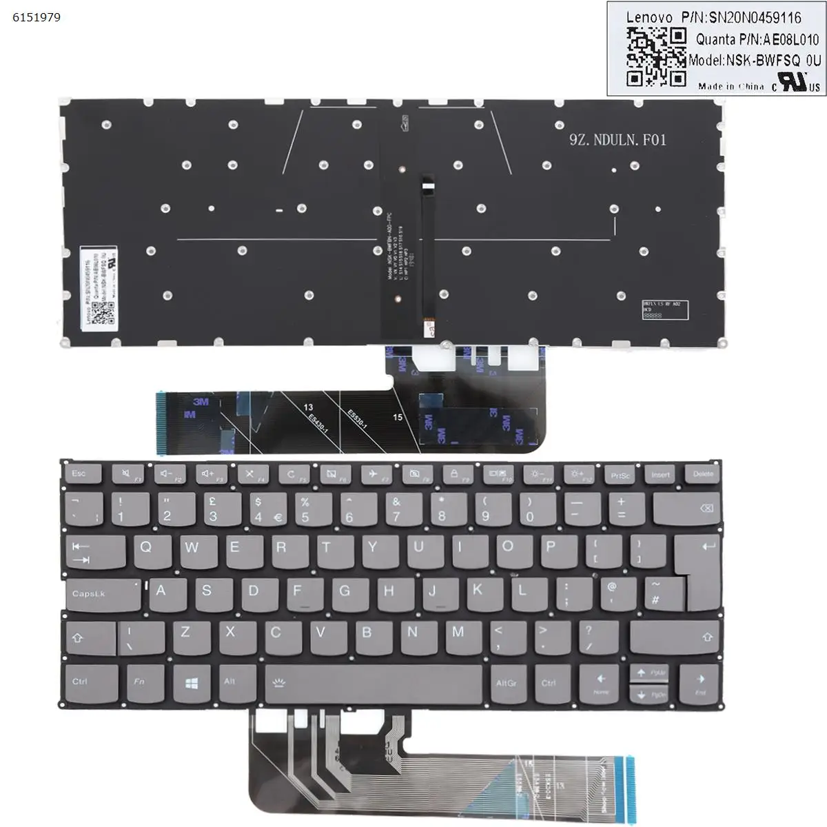 Английская клавиатура для ноутбука IBM Lenovo Flex 6-14ikb 6-14arr S740-14IIL серая подсветка без рамки