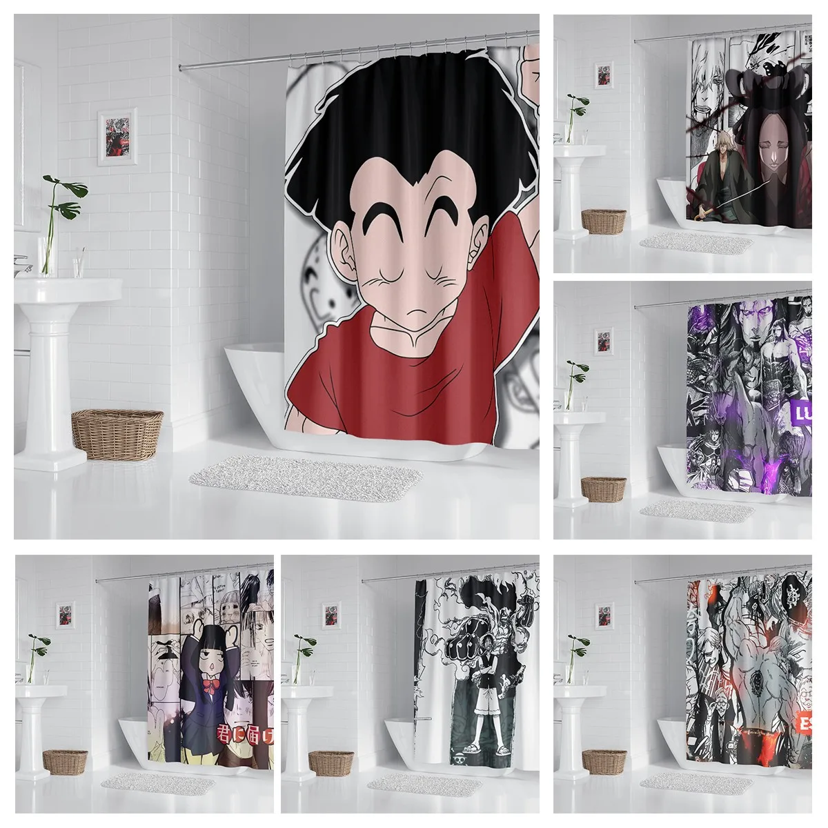 Аниме занавеска для душа с крючком, занавеска для ванной комнаты, декор для ванной комнаты, аниме декор, аксессуары для ванной комнаты, занавеска для душа для ванной комнаты