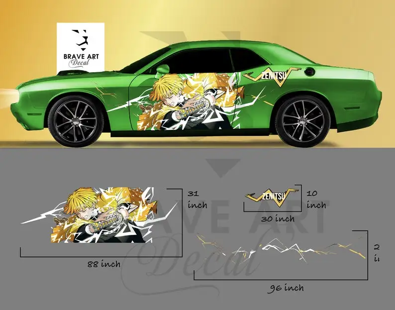Аниме персонаж автомобиля Livery, японский персонаж, универсальный размер автомобиля обертка, Литой Винил обертка, Zenitsu Agatsuma