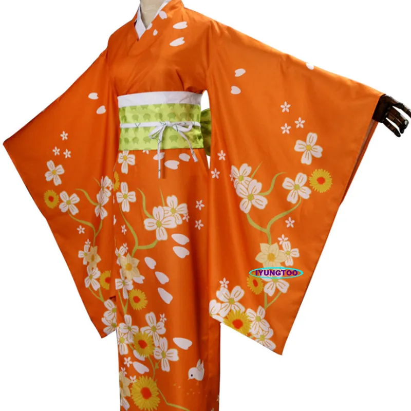 Аниме Danganronpa 2 Hiyoko Saionji косплей костюм женское кимоно оранжевое платье Одежда для Хэллоуина костум