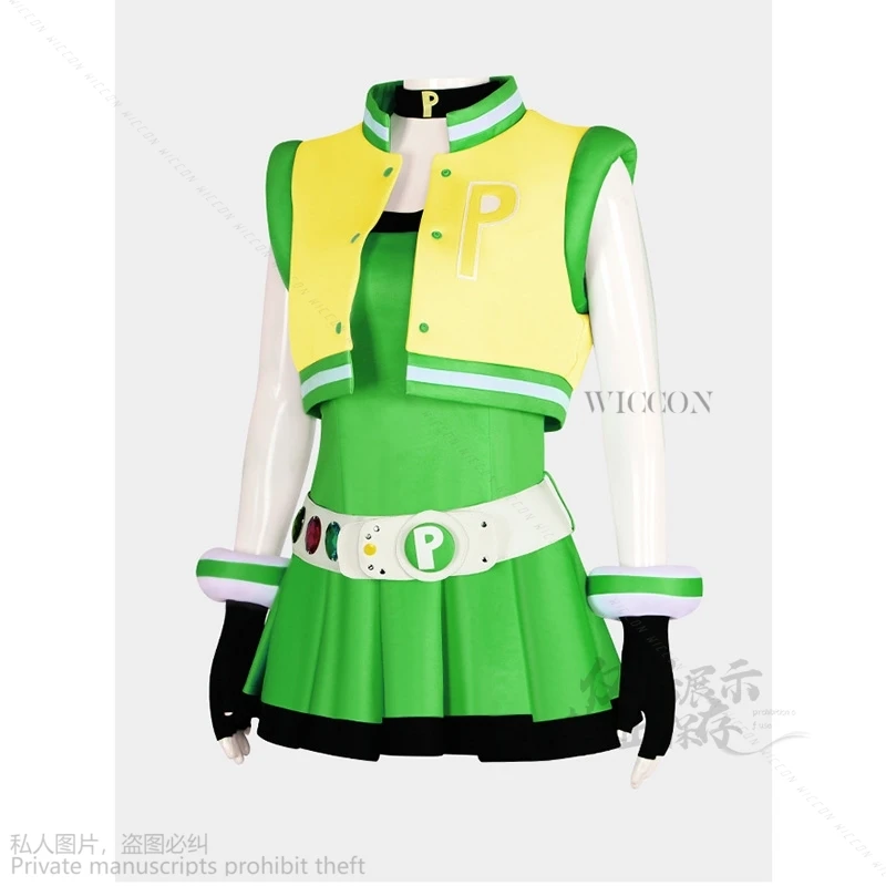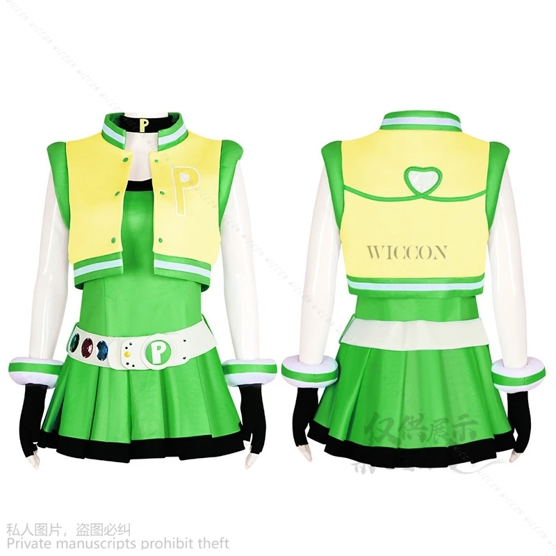 Аниме Power Cos Puff Косплей Костюм для девочек Hyper Blossom Rolling Bubbles Костюм Жилет Пальто Платье Наряд Повязка для волос Перчатки Пояс