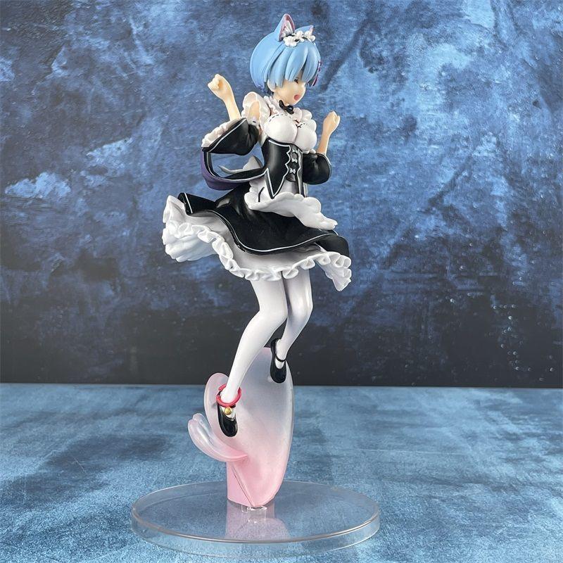 Аниме Re:Zero - Начало жизни в другом мире - «Рэм, Рем с кошачьими ушками фигурка горничной, приз красоты, ручная работа, выставочная модель» 22.5CM