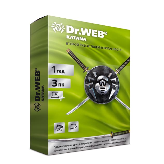 Антивирус Dr.Web Katana, продление, Russian, 1 лицензия, 3 ПК, 3 пользователя, на 12 месяцев, электронный ключ (LHW-KK-12M-3-B3) Высылается на почту после оплаты!, Katana