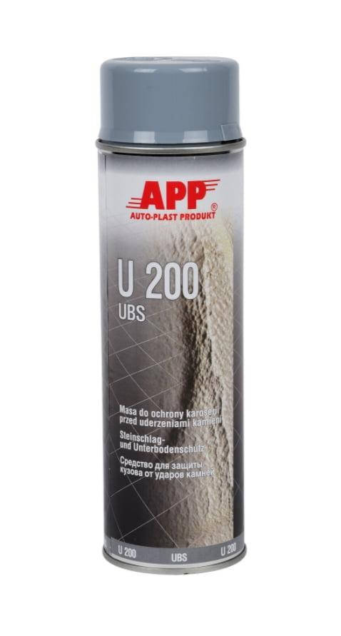 APP U200 UBS - средство в аэрозоли на базе синтетических смол и каучука для улучшения антикоррозионной защиты кузова и от ударов камней. Предназначено для покрытия нижних элементов кузова, передней и задней части кузова, порогов, крыльев и дверей. Применяется при местном ремонте и для восстановления поврежденных защитных слоев после покрасочно-кузовных работ. Сохраняет эластичность, имеет звукоизоляционные свойства. На средство могут наноситься все покрывные автомобильные краски.