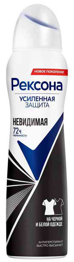 Ощущайте уверенность, используя дезодорант-антиперспирант женский Рексона Невидимая на черной и белой одежде. Дезодорант женский спрей - это эффективное средство личной гигиены, которое обеспечивает коже подмышек оптимальный уход. Аэрозольный антиперспирант женский спрей Невидимая разработан на основе усиленной^ формулы для непревзойденной** защиты от пота и запаха на 72 часа*! Революционная** микротехнология со специальными** микрочастицами активируется в момент потоотделения, сохраняя свежесть в течение всего дня. Дезик женский содержит особые** микрокапсулы с ароматом, которые раскрываются при каждом' твоем движении, сохраняя ощущение свежести с утра до вечера. Больше движений - больше уверенности! Рексона дезодорант женский не требует повторного нанесения в течение дня. Антиперспирант женский Рексона на основе невидимой формулы не испортит вашу одежду, черную или белую''. Дезодорант-аэрозоль женский не оставляет белых следов, желтых пятен и бережно воздействует на ткань.Дезодорант женский антиперспирант имеет привлекательный аромат с легкой мускусной базой, которую изящно дополняют ноты искристого ландыша и чувственного жасмина. Женственный запах приятен при нанесении и не перебивает аромат вашего парфюма. Дезодорант-антиперспирант дерматологически протестирован. Дезодорант женский Рексона подходит для ежедневного применения. Рексона антиперспирант женский не требует повторного нанесения в течение дня. Добавьте дезодорант от запаха и пота в свой ежедневный ритуал свежести! Используйте антиперспирант-аэрозоль сразу после приема душа. Аэрозольный дезодорант-антиперспирант - это практичный подарок для девушки, женщины на любой праздник и просто так. Дезодорант женский Рексона можно купить жене, маме или подруге.^по сравнению с предшествующей линейкой антиперспирантов Рексона ''Невидимая'' 48ч,*72 ч уверенности в защите – клинически подтверждено хот рум тестом, 2019**в портфеле бренда Рексона, за исключением линейки Рексона Клиникал,'сопровождаемым трением руки о тело,''при соблюдении инструкции по применению.