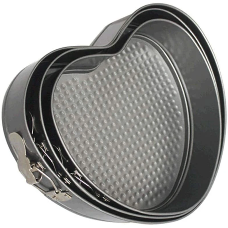 Антипригарная сковорода Springform со съемным дном, для пиццы и крючков, прочная антипригарная поверхность (3 шт. сердца 18-20-22, черная)