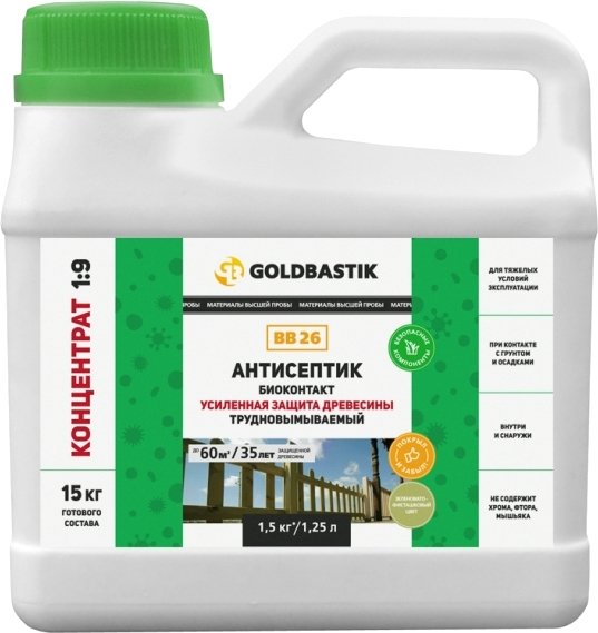 Антисептик Goldbastik Биоконтакт BB 26 (зеленый/фисташковый, 1.25 л, концентрат 1:9)