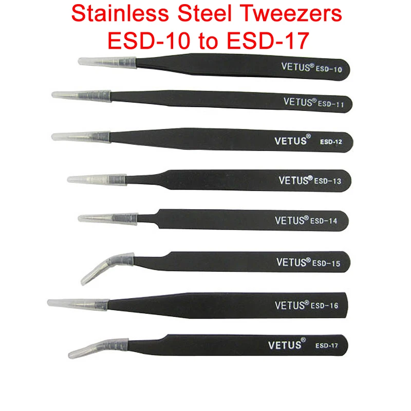 Щипцы из нержавеющей стали ESD10 ESD17, антистатические тонкие Угловые пинцеты с острым носком, инструменты для пайки, промышленные щипцы «сделай сам»