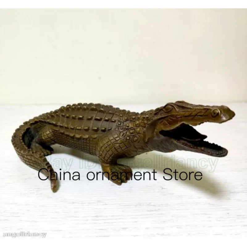 Античная статуя гения азиатская Древняя земля медная Бронзовая статуя крокодил