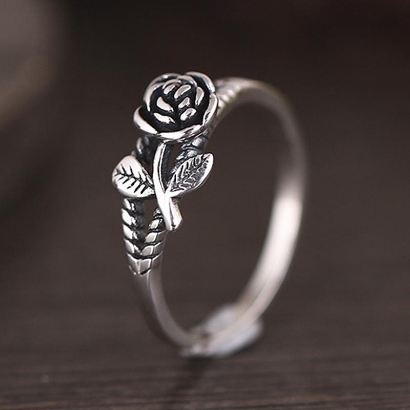 Античное серебро Готическое кольцо с розой, регулируемое, женское