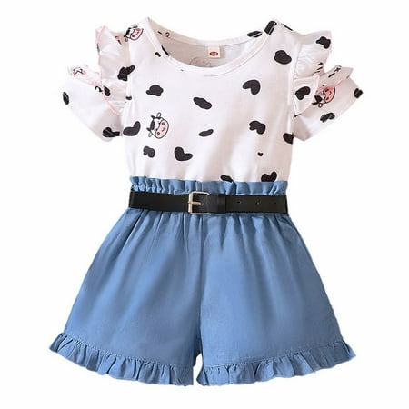 ZRBYWB Children s Clothing Girl Clothes Summer Cartoon Print Top + Shorts Set Suitable For 2 To 7 Years Old Children Summer Clothes