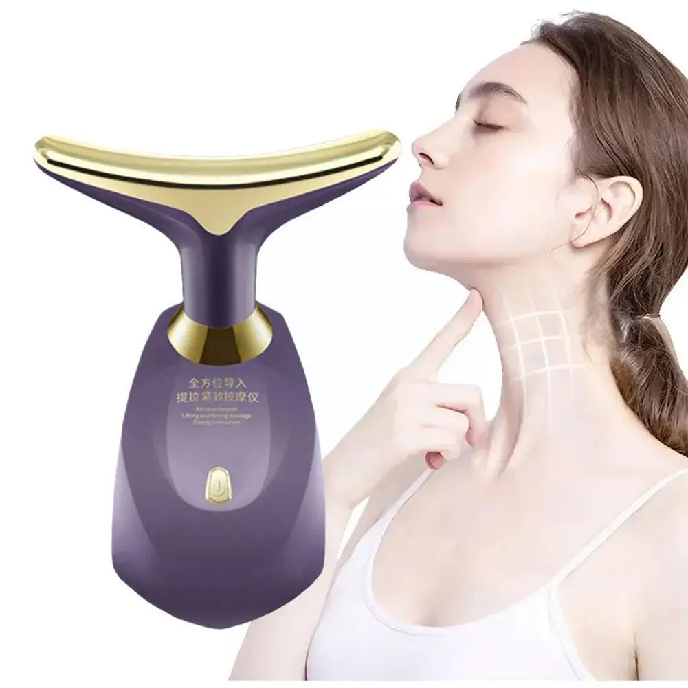 Аппарат для лифтинга лица и шеи, фотонный терапевтический массажер, двойной вибратор против морщин, для уменьшения старения подбородка, O8R7