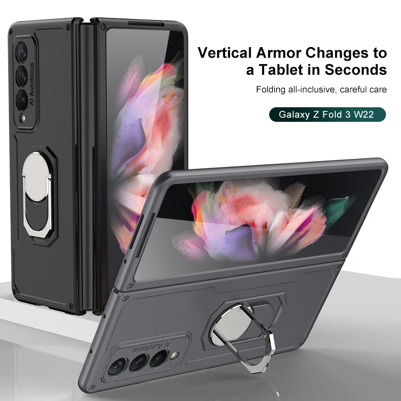 Армированный защитный чехол GKK для Samsung Galaxy Z Fold 2 3, противоударный чехол с подставкой и кольцом для телефона Samsung Z Fold 2 3