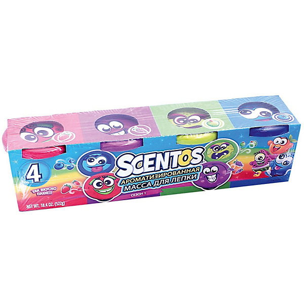 Ароматизированная масса для лепки WeVeel Scentos, 4 банки, клубника, виноград, яблоко и черника, Разноцветный