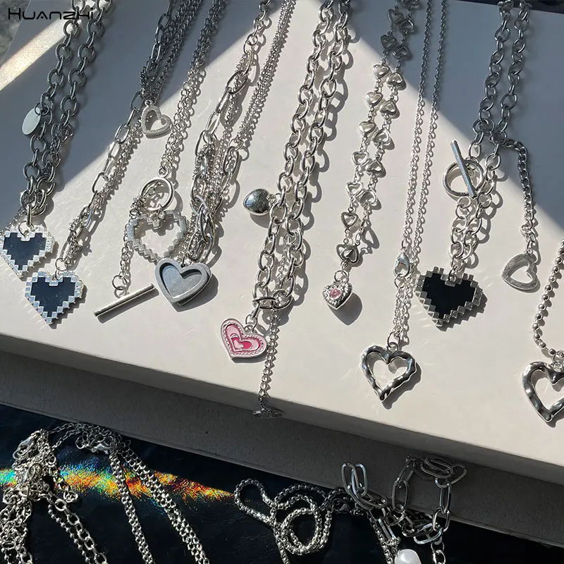 Асимметричное цветное ожерелье с кулоном в виде сердца, двухслойная цепочка, металлическое ожерелье с жемчугом для женщин и мужчин, модное ...