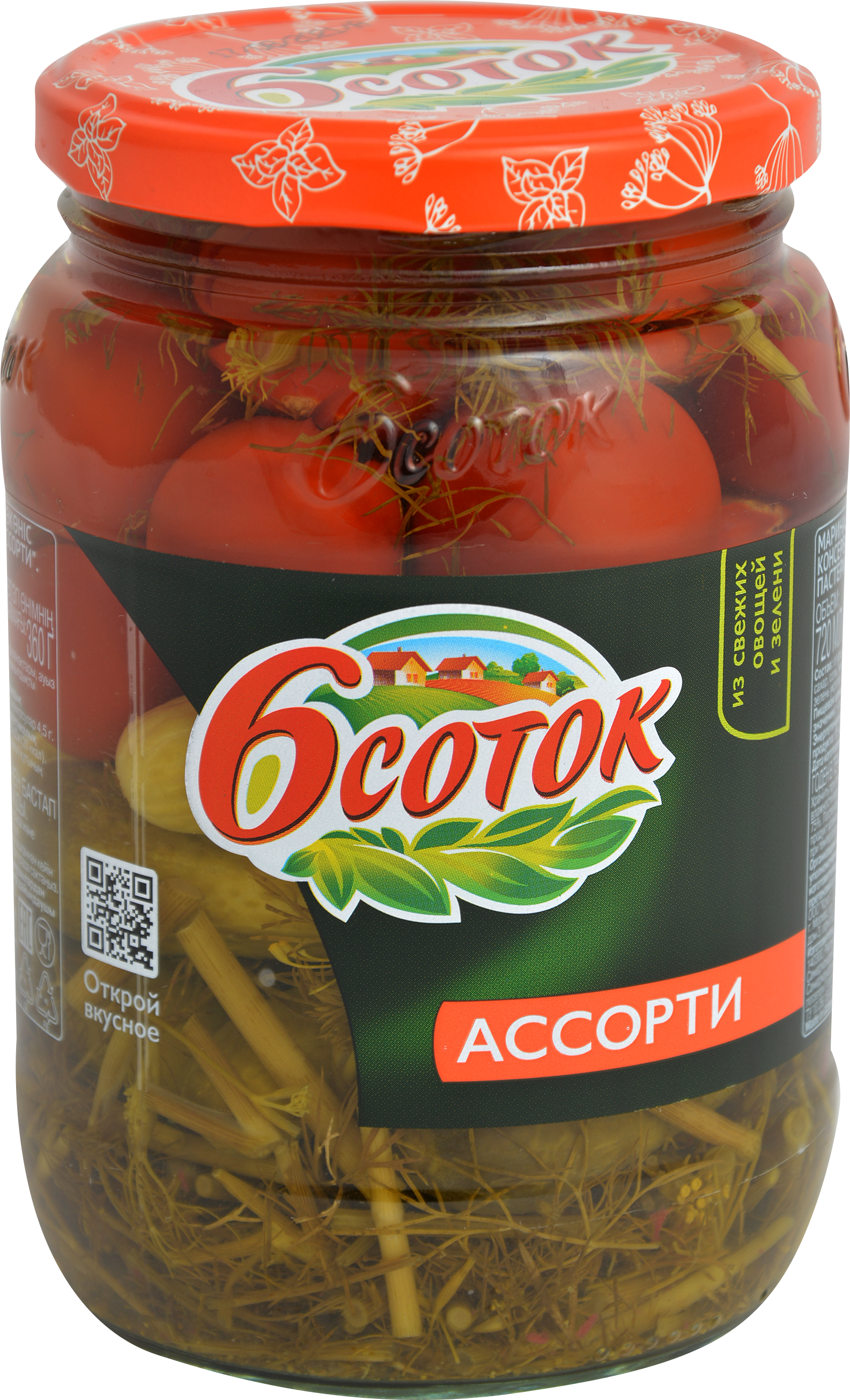 Срок годности в днях: 1095Состав: огурцы свежие, томаты чери, вода пиьевая, сахар, соль, кислота уксусная (регулятор кислотности), пряностиПищевая ценность: Калорийность: 20Белки: 0Жиры: 0Углеводы: 4Страна изготовления: РоссияПроизводитель: 6 Соток