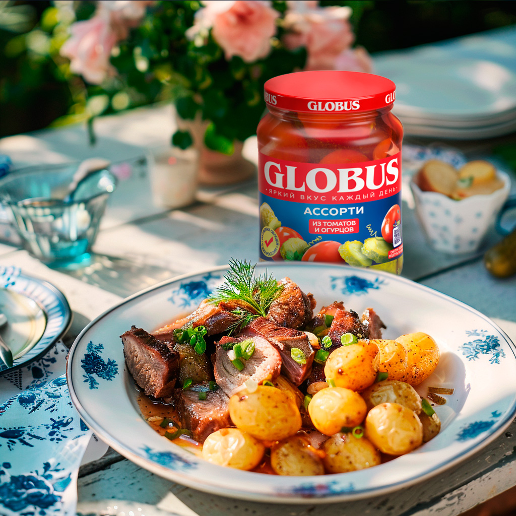 Ассорти Globus из маринованных томатов и огурцов 680 г