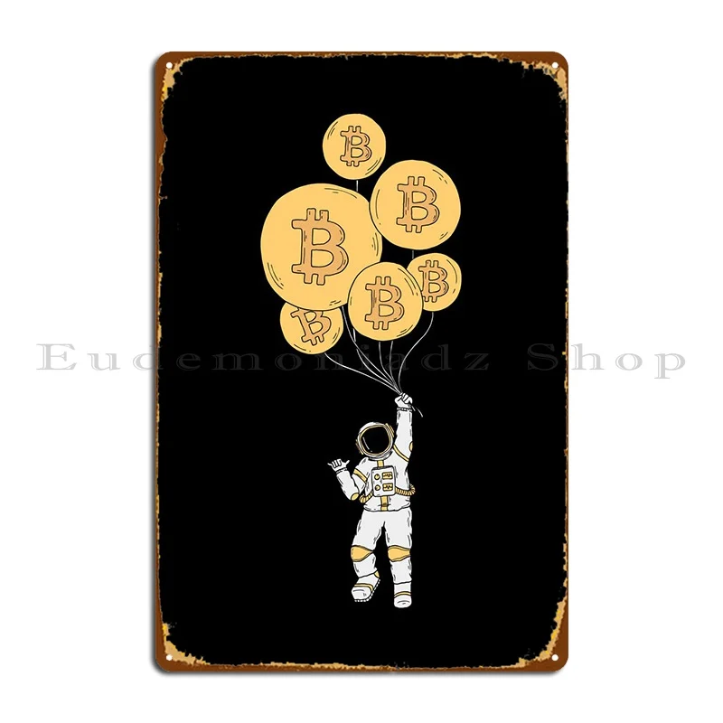Астронавт Биткоин шар Металлический плакат символ клуба дома фотопещера жестяной знак плакат