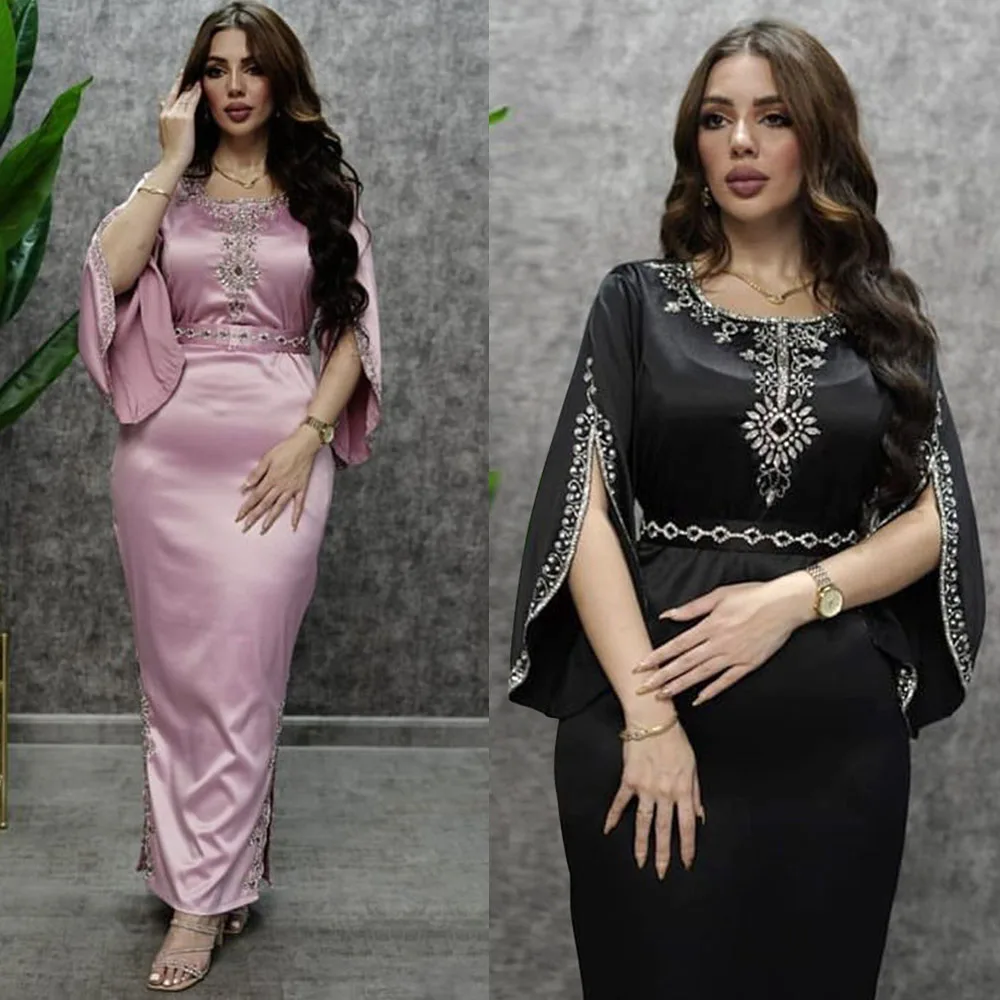 Атласная абайя, бриллианты, исламское, арабское, пакистанское, мусульманское длинное платье, женское длинное платье, Caftan, Марокко