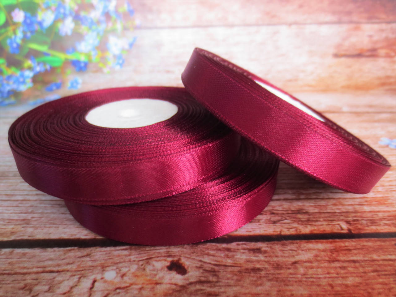 Атласная лента 1,2 см, 33 м, цвет БОРДОВЫЙ