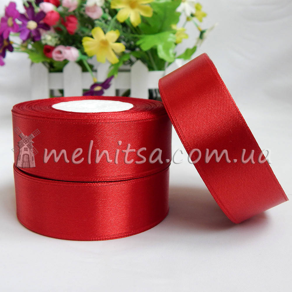 Лента атласная однотонная. Цвет темно-красный. Ширина 2,5 см. Купить атласную ленту можно от 1 метра.