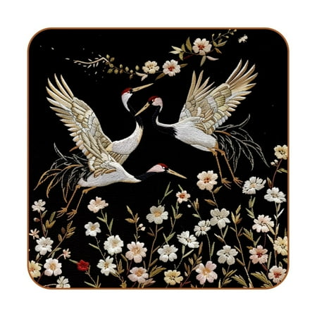 Coasters Tabletop Protection Mat Cups Place Mats for Home Decor 6-Pc White Crane and Flower