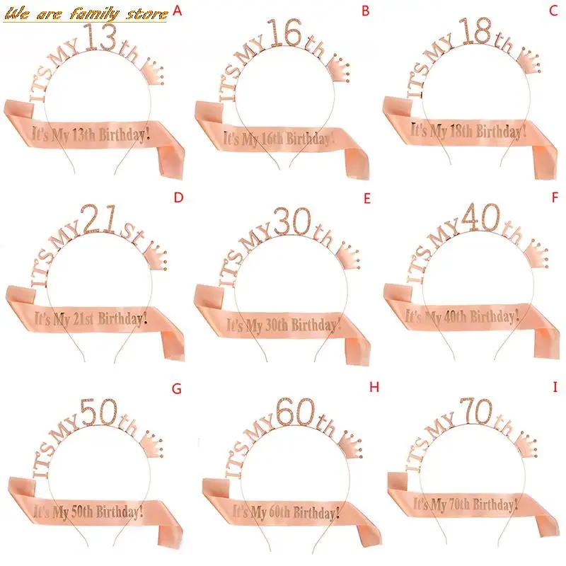 Атласная тиара It's My 13 16 18 21 30 40 50 60 70 80, набор для вечеринки в честь Дня Рождения, с короной, повязка на голову, товары для вечеринки в честь Дня ...