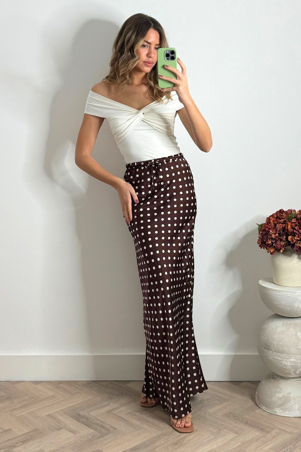 Атласная юбка-комбинация миди Sylvia с кулиской Style Cheat, коричневый