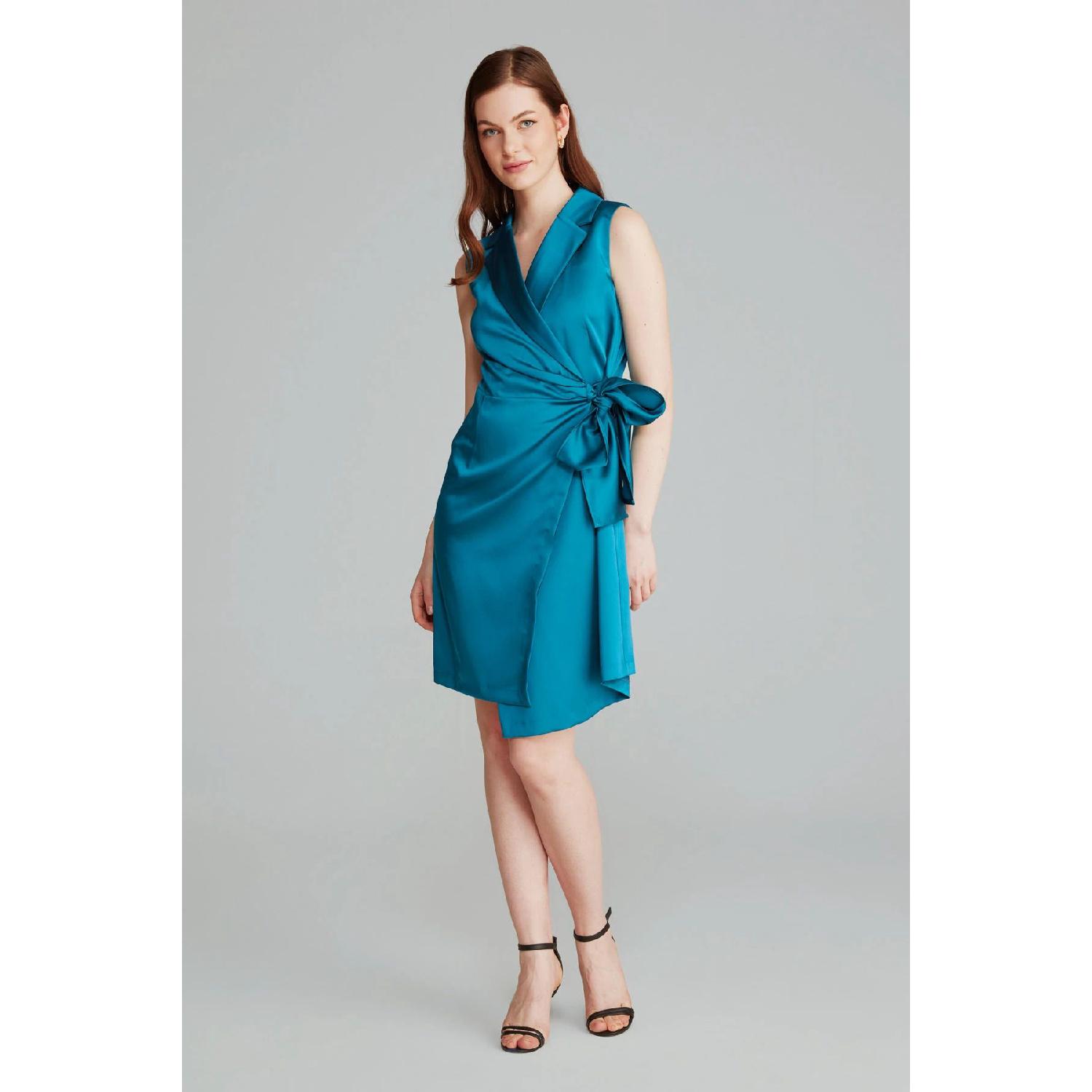 Атласное Платье-Жакет - Петрольно-Зеленый S чёрный