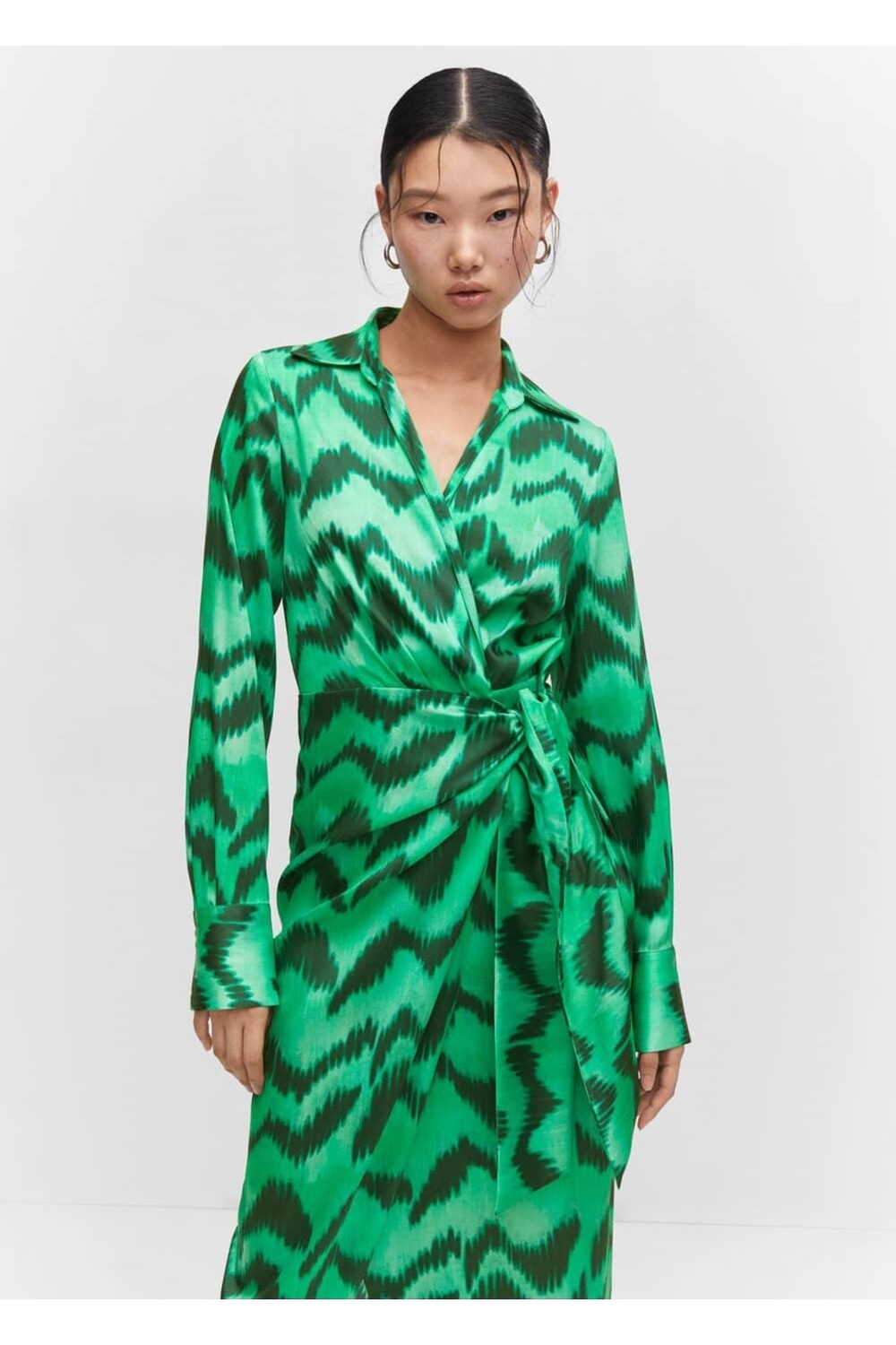 Атласное платье-рубашка с рисунком Mango, зеленый
