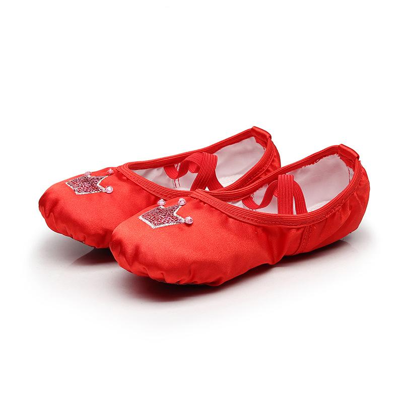 Атласные балетки для детей и девочек. Танцевальная обувь для начинающих. Симпатичные танцевальные туфли с короной. 39 красный