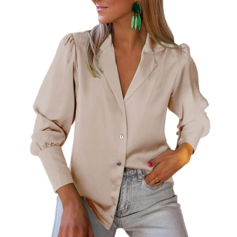 Атласные блузки Женские однотонные блузки с длинным рукавом и офисными лацканами