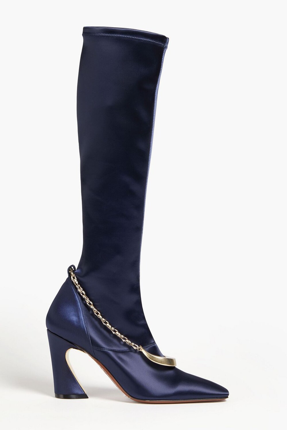 Атласные сапоги до колен с отделкой цепочкой ZIMMERMANN, нави
