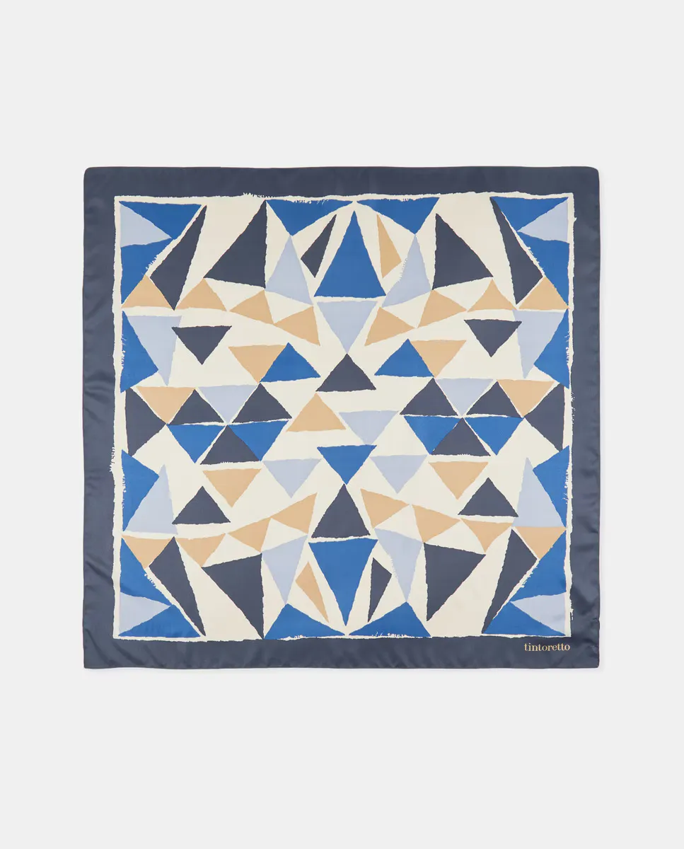 Атласный шарф с геометрическим принтом Tintoretto, темно-синий