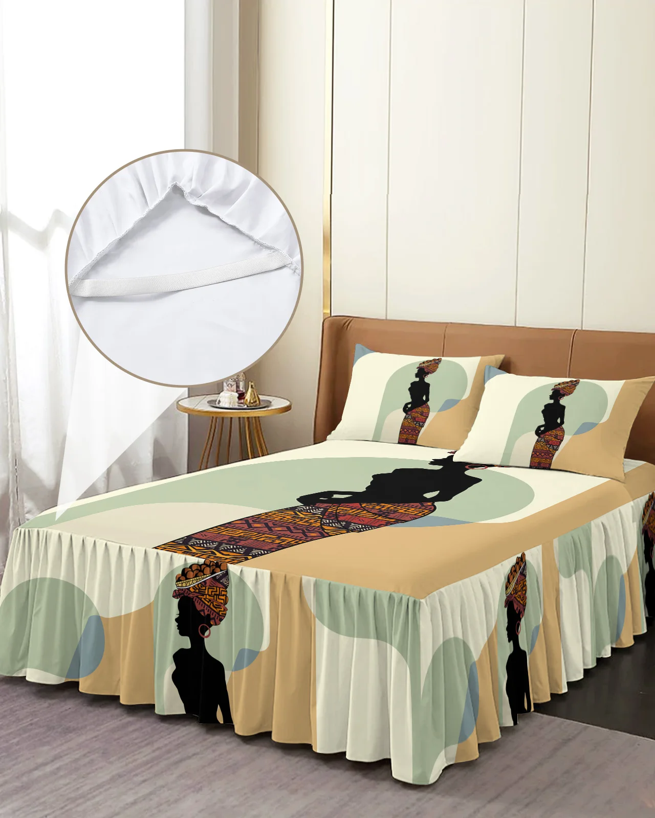 Африканская Женская Геометрическая постельная юбка, эластичное постельное белье с наволочками, протектор для кровати, наматрасник, Комплект постельного белья, простыня