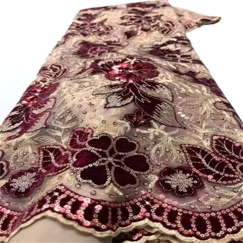 Африканская бархатная кружевная ткань с блестками 2023, Высококачественная африканская кружевная ткань, французская кружевная ткань, нигерийская Кружевная Ткань 5 ярдов