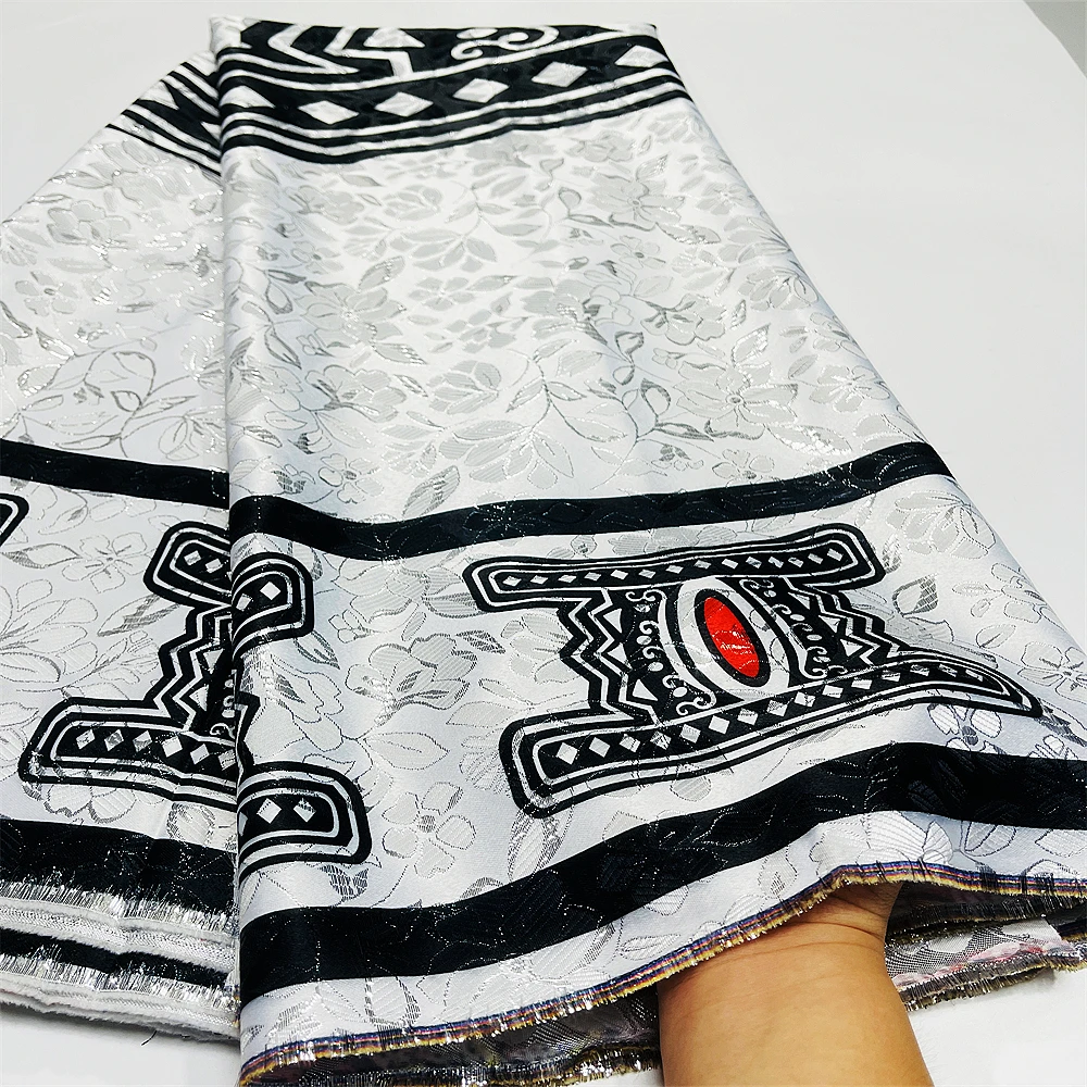 Африканская жаккардовая парчовая ткань, черно-белое кружево, Африканский принт, 5 ярдов