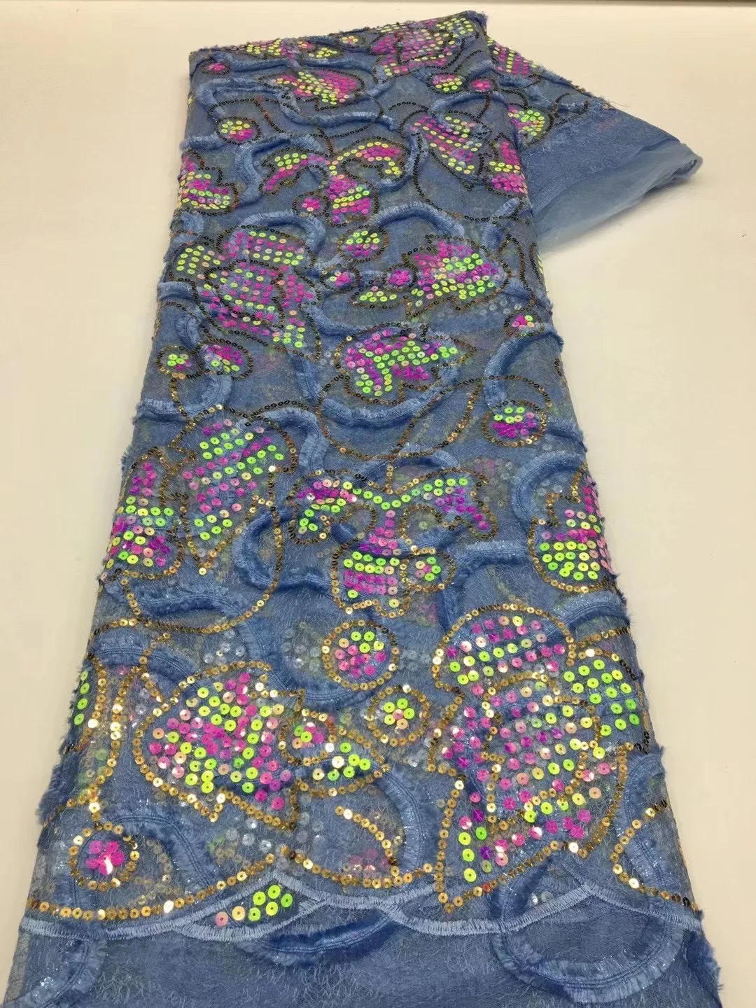 Африканская кружевная ткань 2023 Высокая яркость с блестками, нигерийская кружевная ткань для платья 5 ярдов XX5467