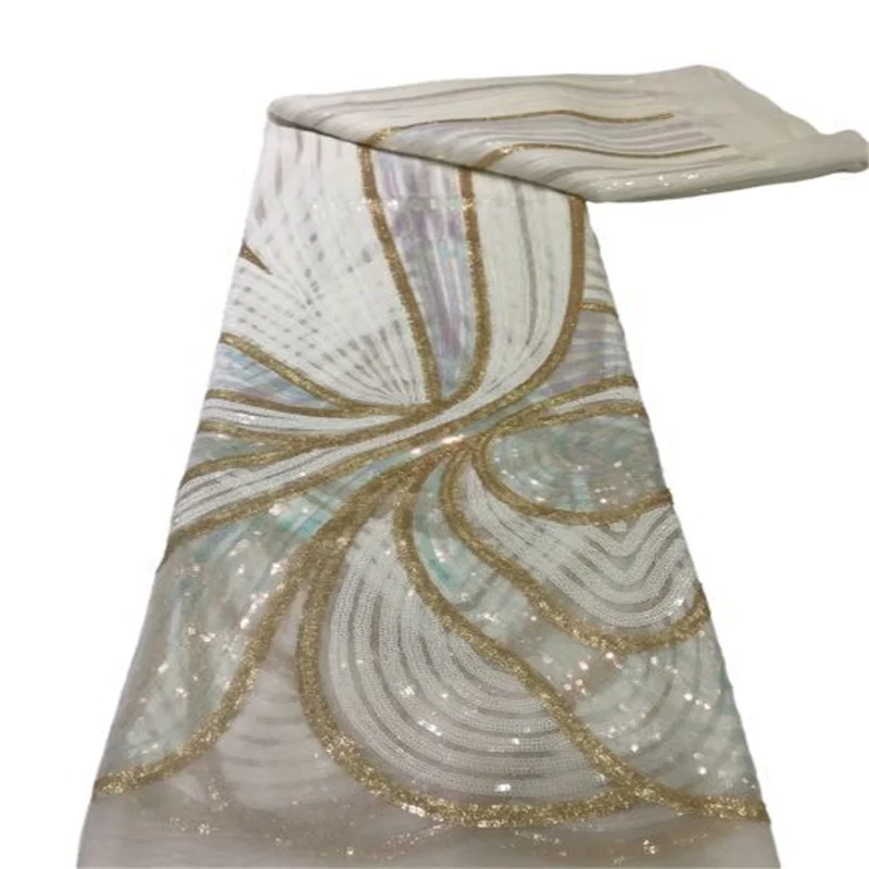 Африканская сетчатая кружевная ткань с блестками, белое/золотое высококачественное кружево, французское Тюлевое кружево, нигерийская круж...
